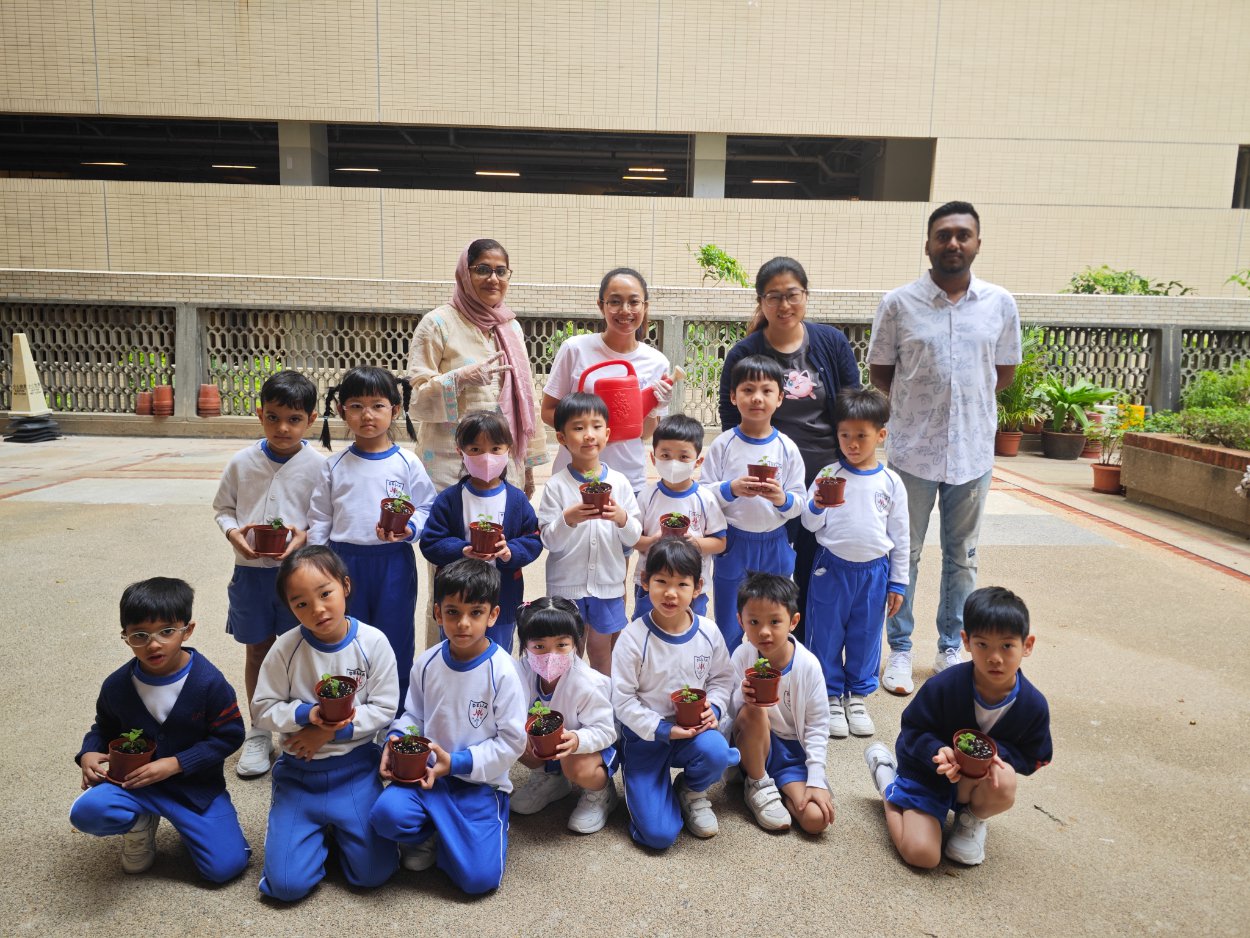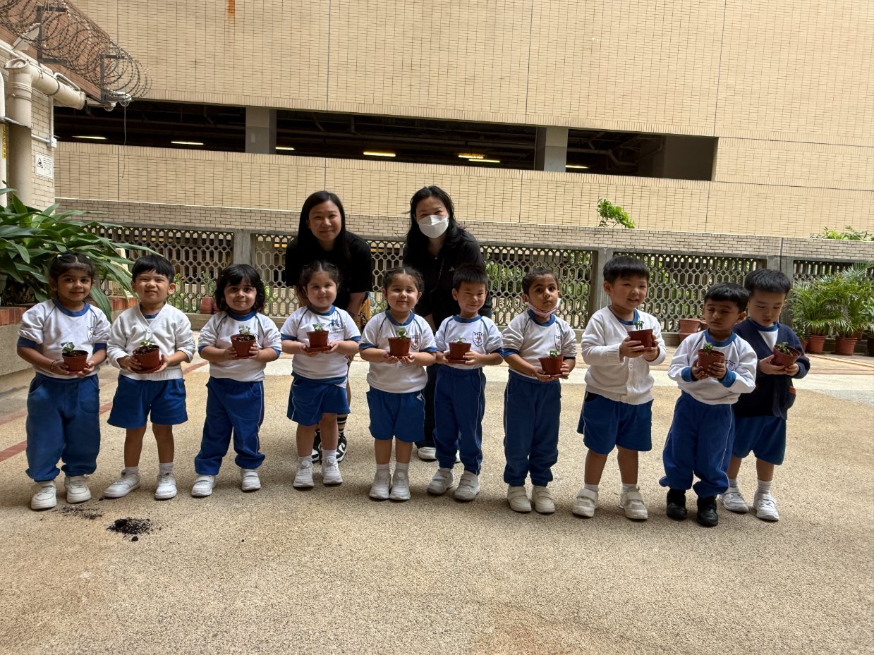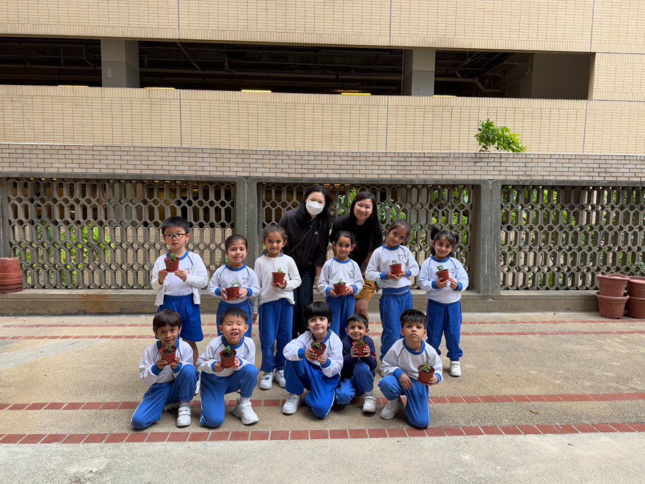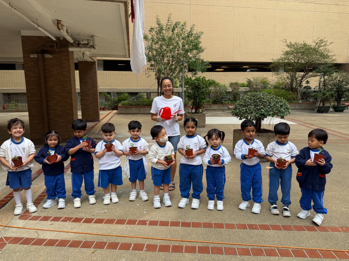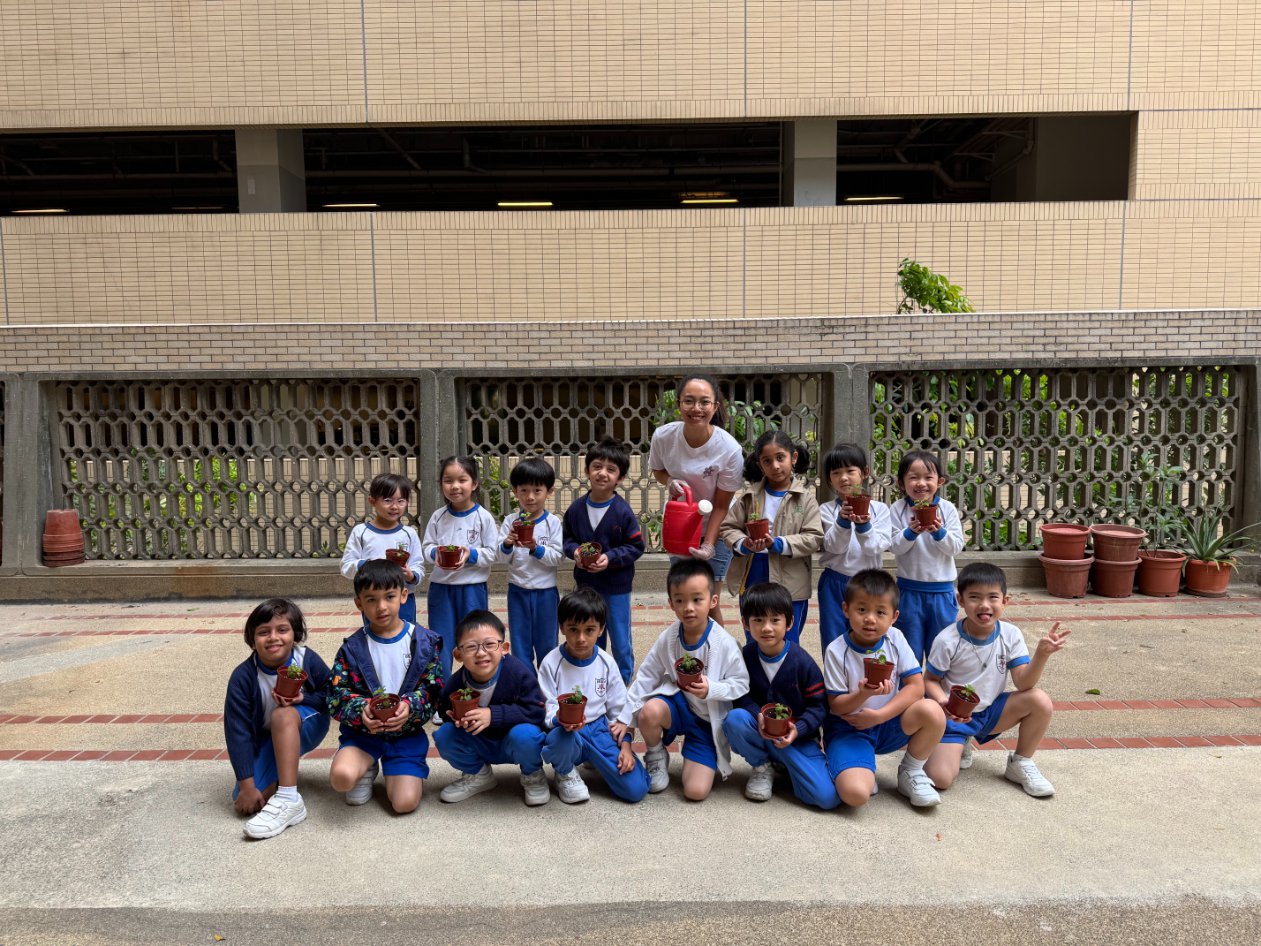 This year, our school proudly joined Hong Kong’s One Person, One Flower Scheme, a citywide initiative that encourages communities to connect with nature through hands-on planting. On our planting day, kindergarten students teamed up with volunteer helpers from across our school community to bring vibrant life to our garden beds.