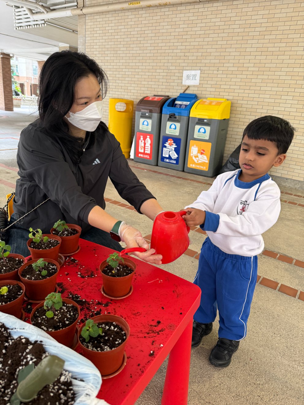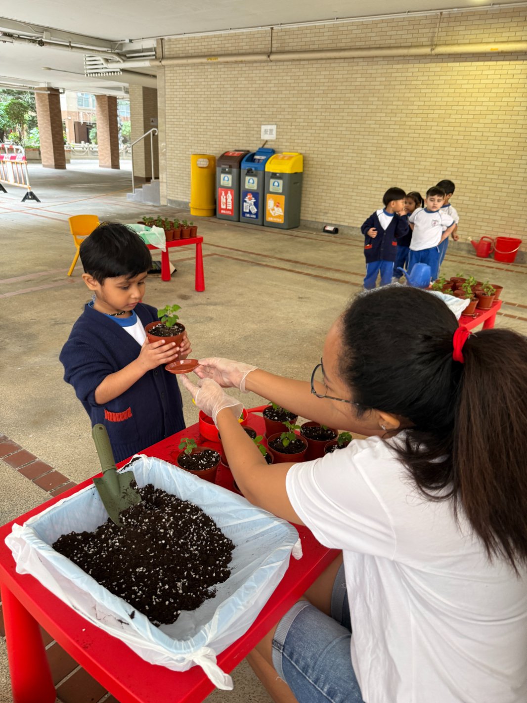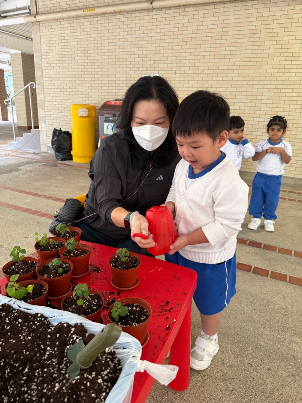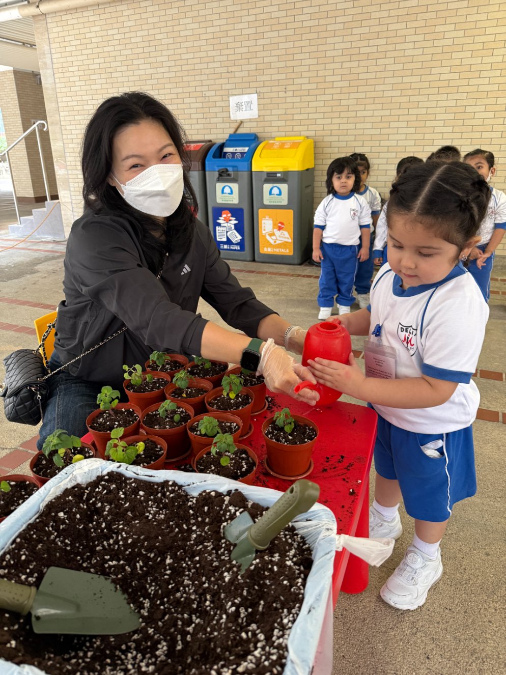 This year, our school proudly joined Hong Kong’s One Person, One Flower Scheme, a citywide initiative that encourages communities to connect with nature through hands-on planting. On our planting day, kindergarten students teamed up with volunteer helpers from across our school community to bring vibrant life to our garden beds.