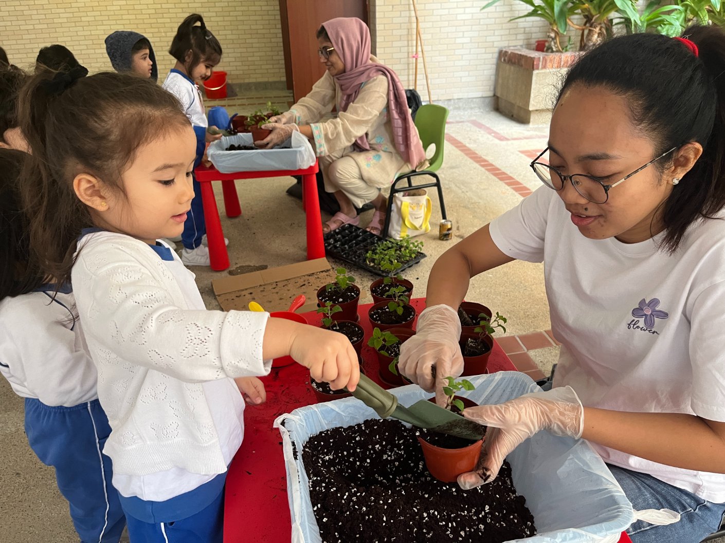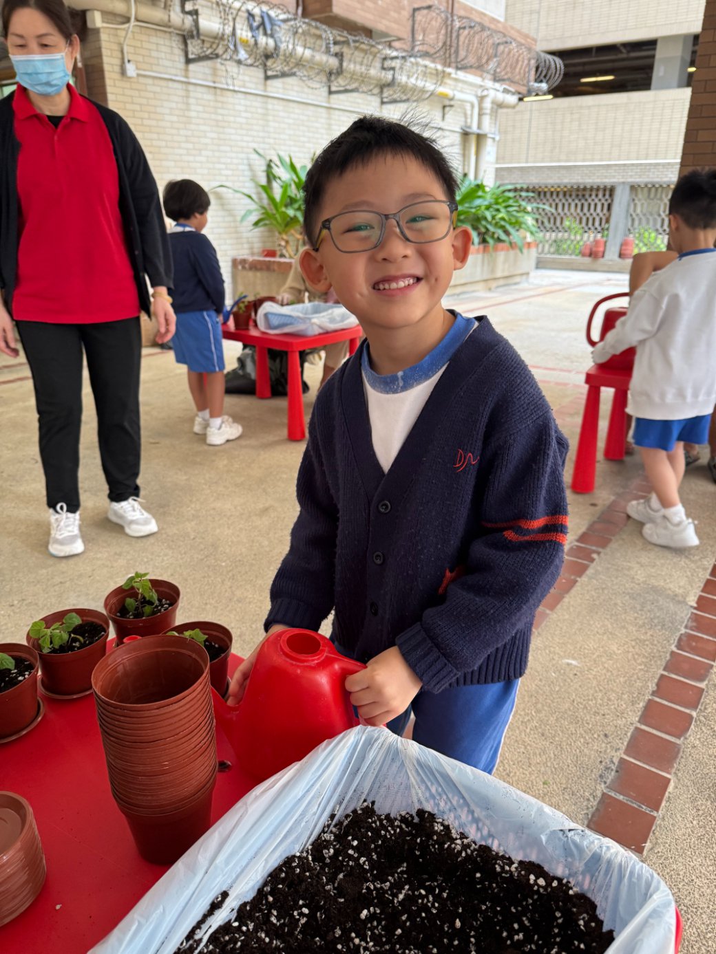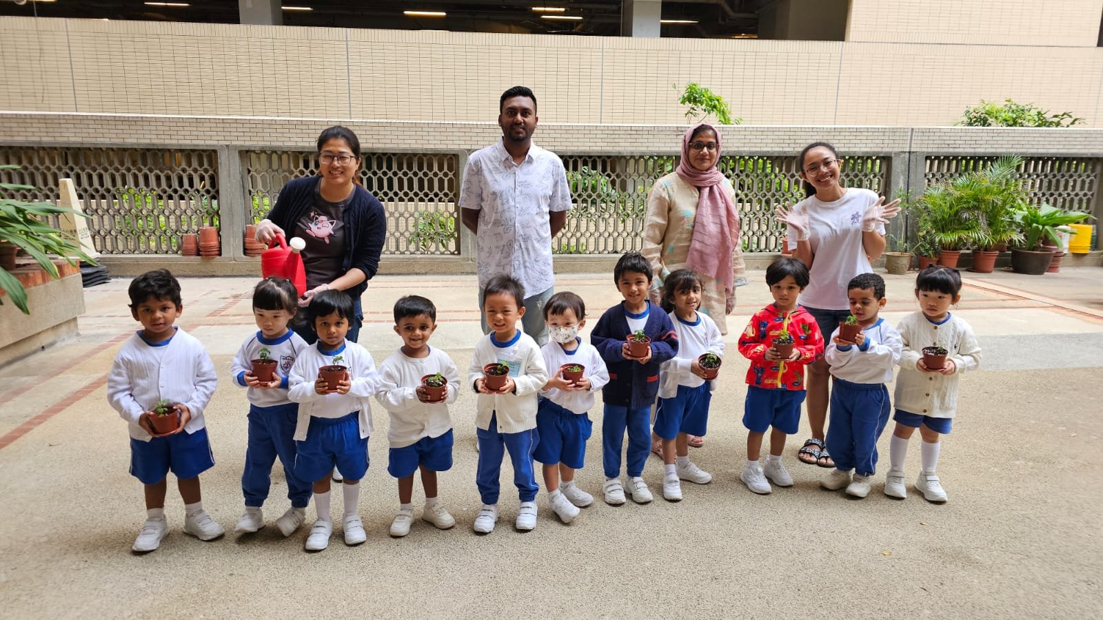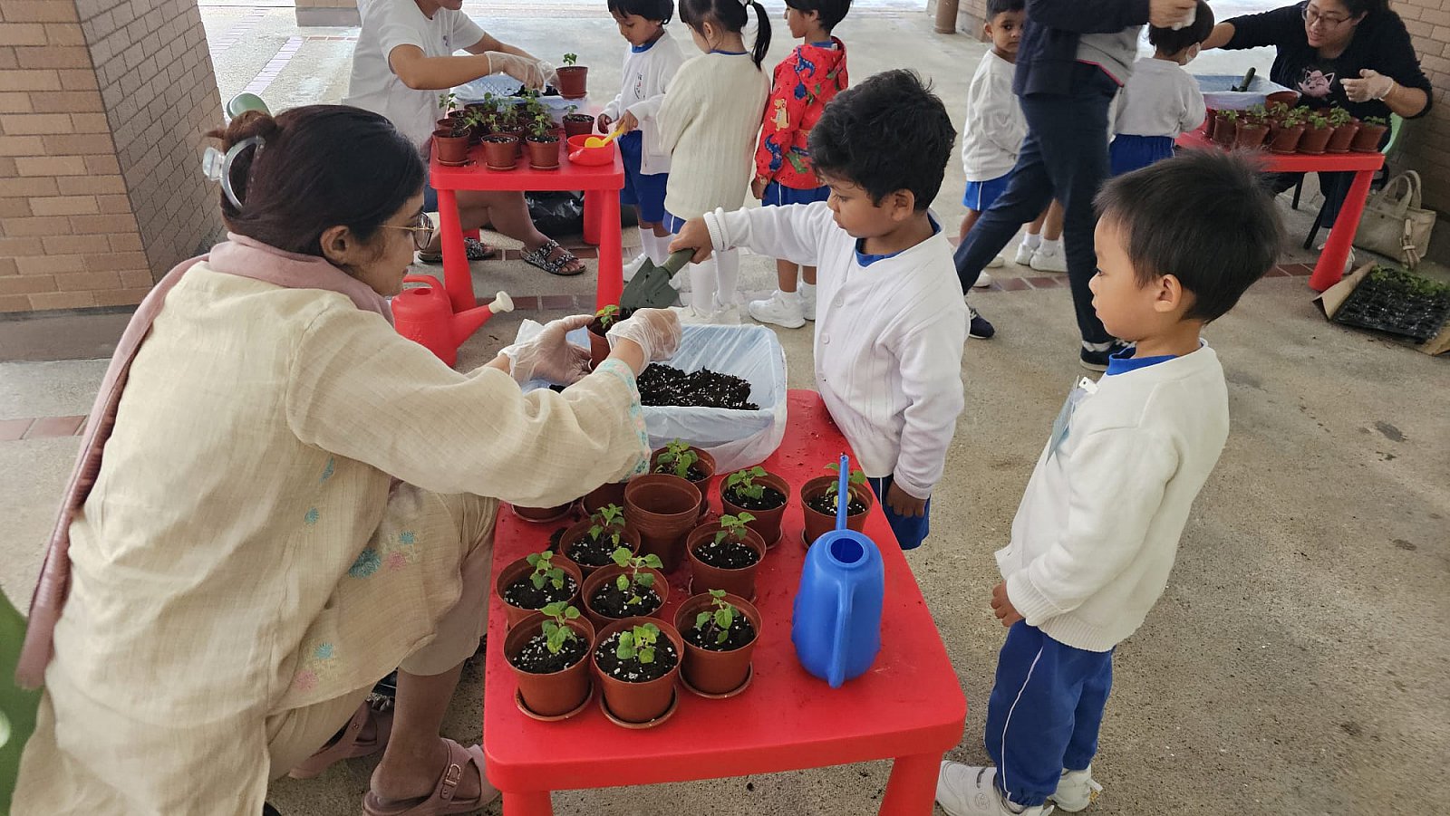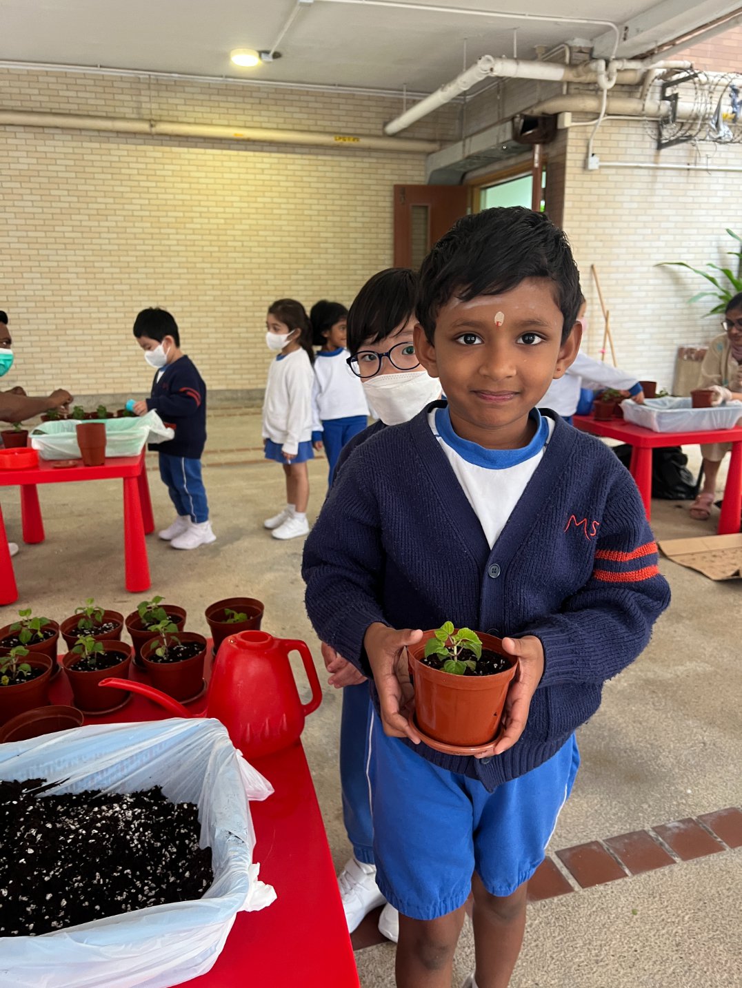 This year, our school proudly joined Hong Kong’s One Person, One Flower Scheme, a citywide initiative that encourages communities to connect with nature through hands-on planting. On our planting day, kindergarten students teamed up with volunteer helpers from across our school community to bring vibrant life to our garden beds.